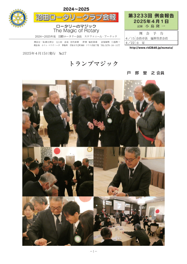 沼田ロータリークラブ会報 Vol.27 2025.04.15