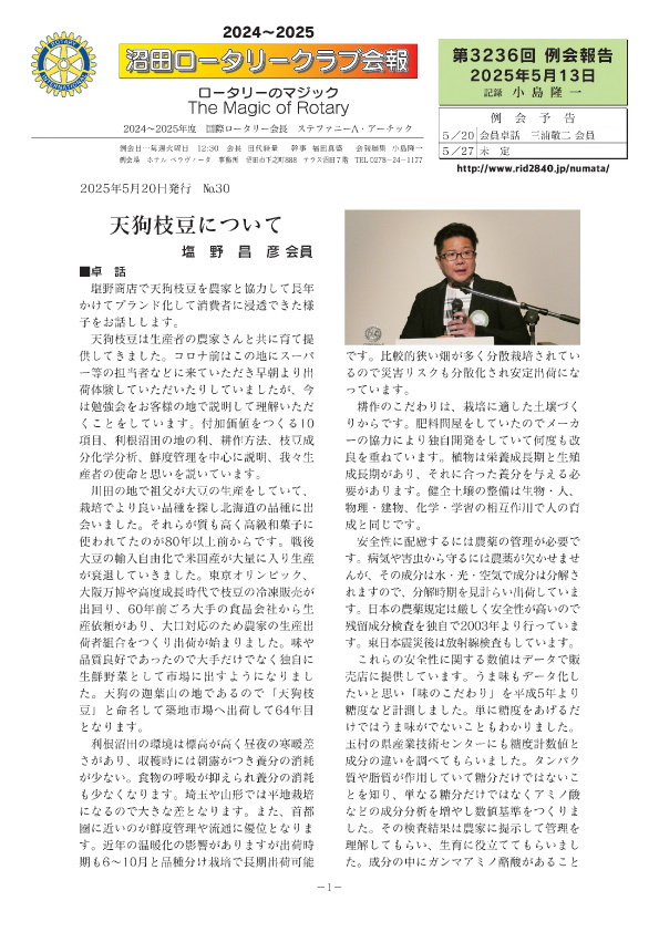 沼田ロータリークラブ会報 Vol.30 2025.05.20
