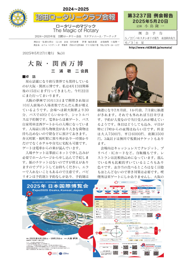 沼田ロータリークラブ会報 Vol.31 2025.05.27