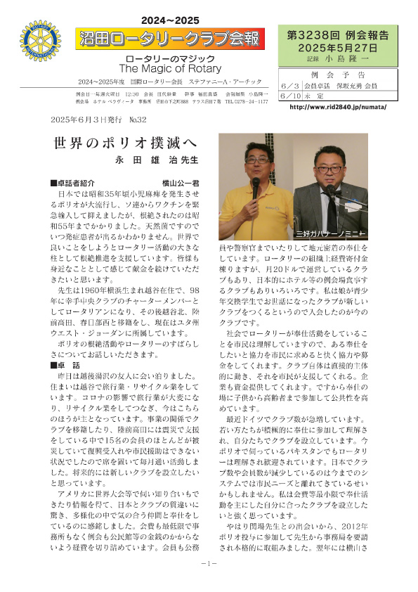 沼田ロータリークラブ会報 Vol.32 2025.06.03