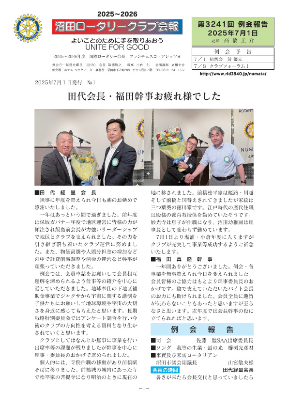 沼田ロータリークラブ会報 Vol.1 2025.07.01