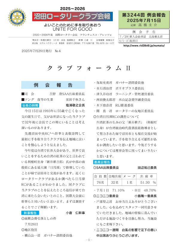 沼田ロータリークラブ会報 Vol.4 2025.07.29