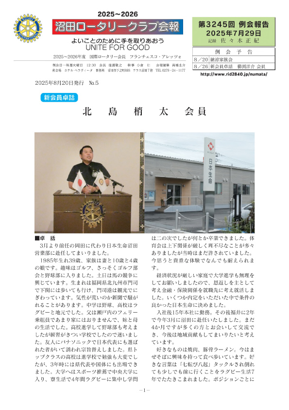 沼田ロータリークラブ会報 Vol.5 2025.08.20