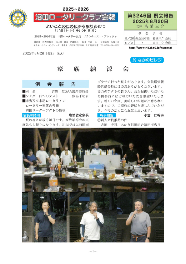 沼田ロータリークラブ会報 Vol.6 2025.08.26