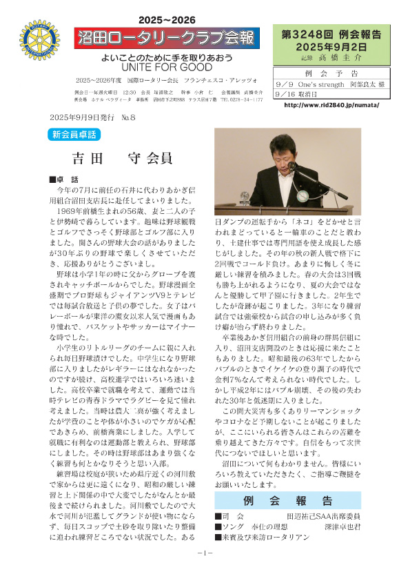 沼田ロータリークラブ会報 Vol.8 2025.09.09