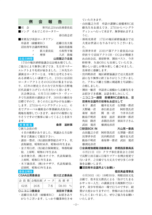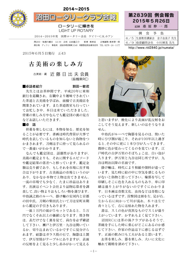 沼田ロータリークラブ会報 Vol.43 2015.06.05