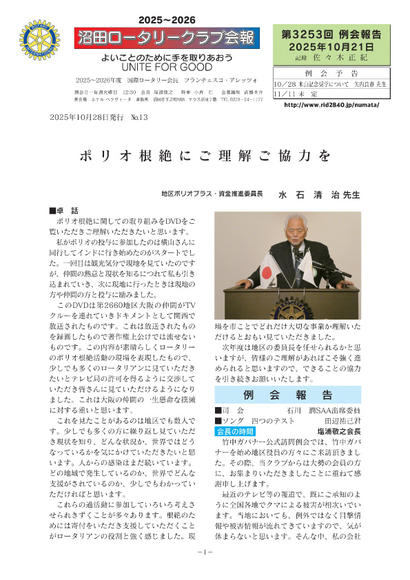 沼田ロータリークラブ会報 Vol.13 2025.10.28
