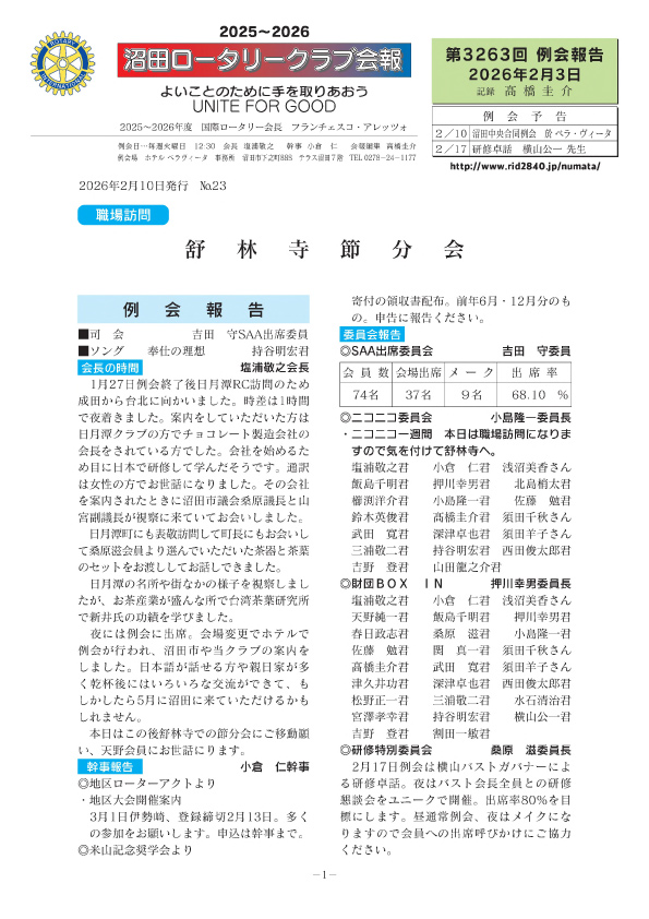 沼田ロータリークラブ会報 Vol.23 2026.02.10